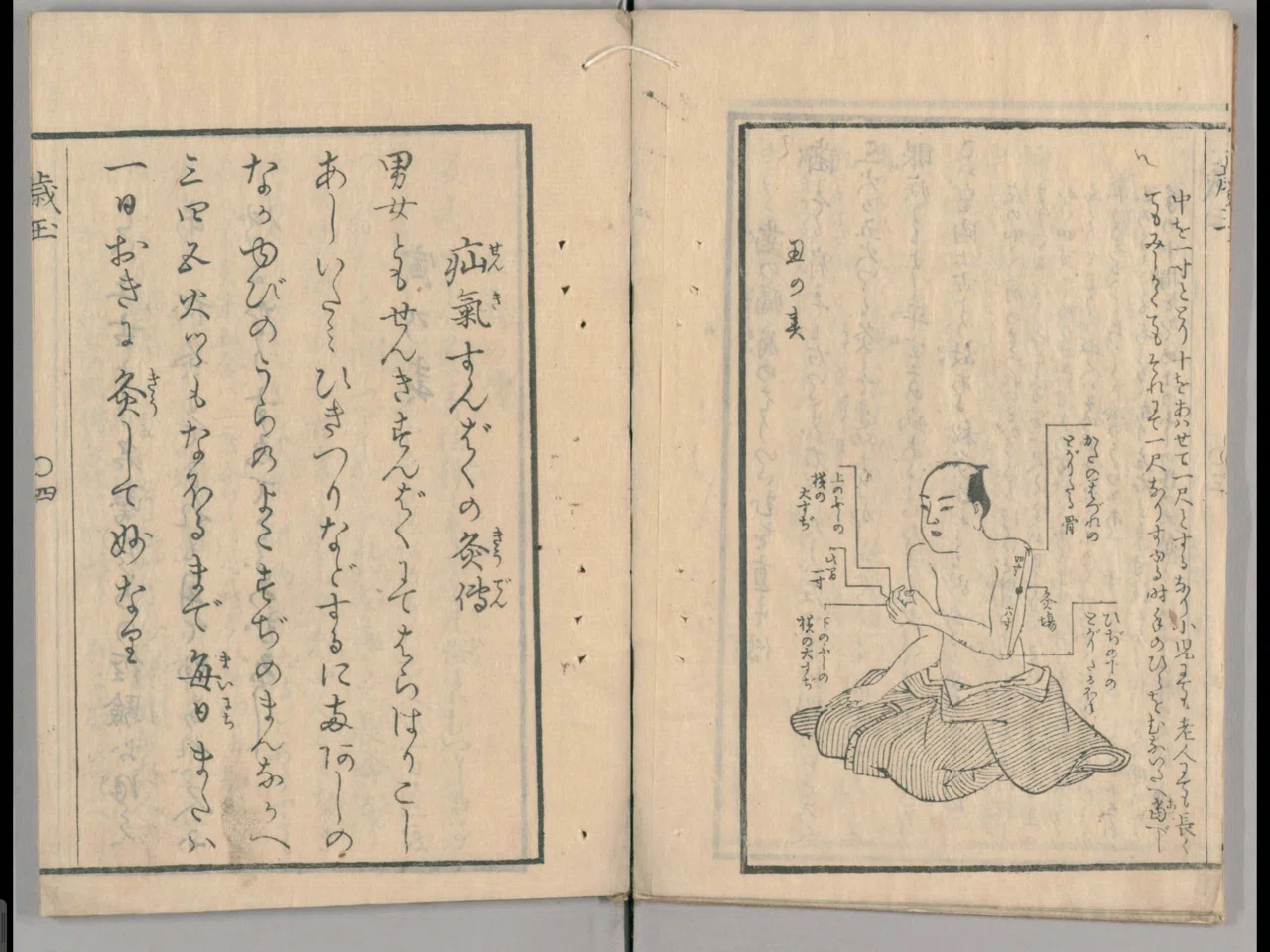 歯にても肩にても右いたまば右、左いたまば左の手の圖のところへ三火か五火つつも灸して速功(たちまちしるし)あり。かたのはるにも同し。もろもろの眼疾にもよし。平生(つね)その病あるにはたえず久しくすゆれば直るなり。こは皇国上古より故ある秘灸なれども妙なるがゆえに人に示す。