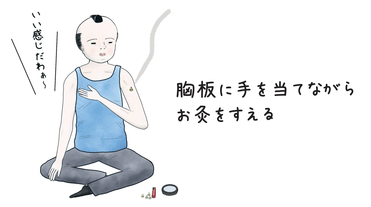 やり方の基本は普通の灸と同じです。お灸をするときの姿勢は上のイラストのようにしましょう。