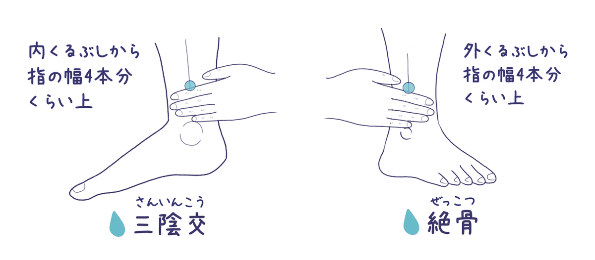 婦人科系の治療によく使われる有名なツボですが、『鍼灸聚英』という明代の鍼灸専門書には「脾胃虚弱」に対する効能もあげられています。足の内側にある全ての経絡がここを通過するので、効率よく全身のめぐりを促進できます。